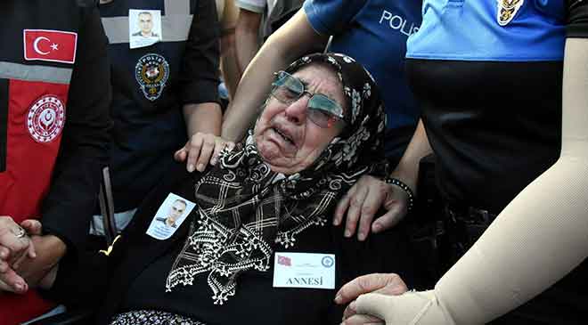 Şehidin kızı Öykü Gökçen Şimşek ile eşi Nurhayat Şimşek’in özel harekat polisi üniforması giydiği görüldü.