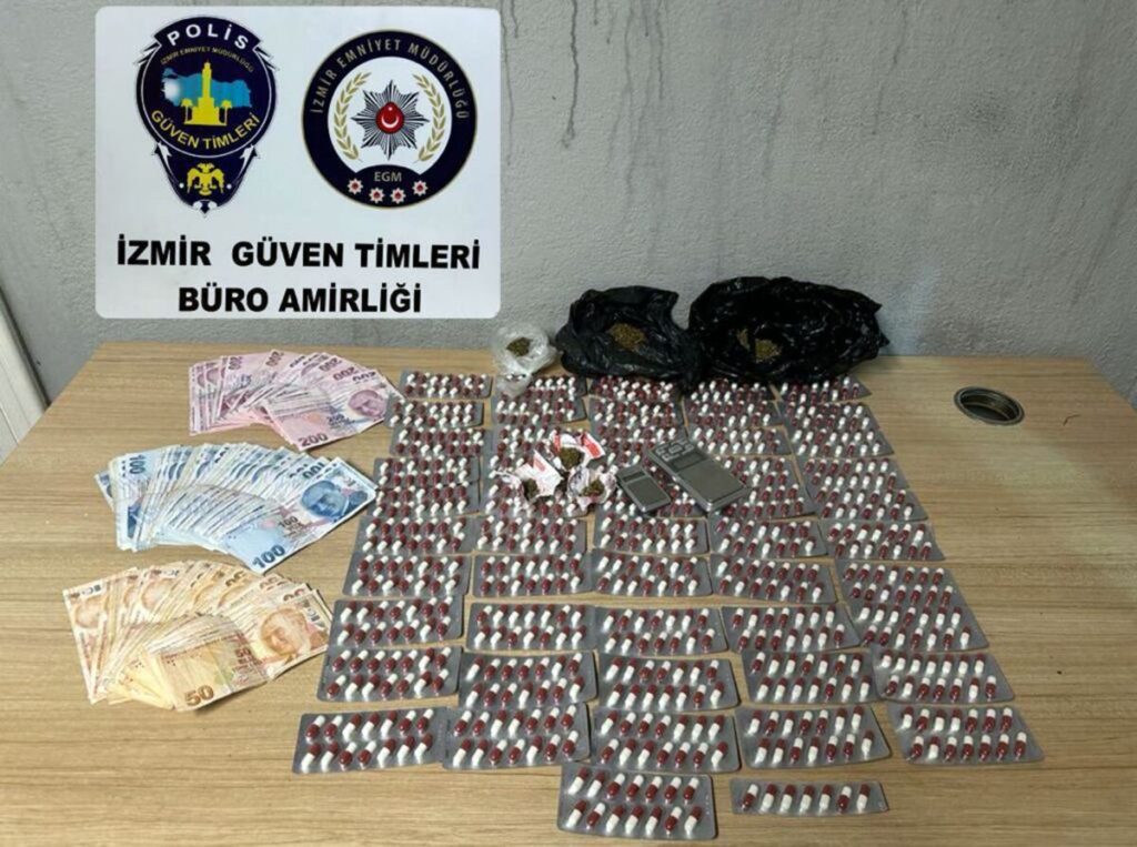 İzmir’de, üzerinde 749 uyuşturucu hap, 33 gram esrarla yakalanan uyuşturucu satıcısı İ.E. (36) gözaltına alındı. Adliyeye sevk edilen şüpheli çıkarıldığı mahkemece tutuklandı.