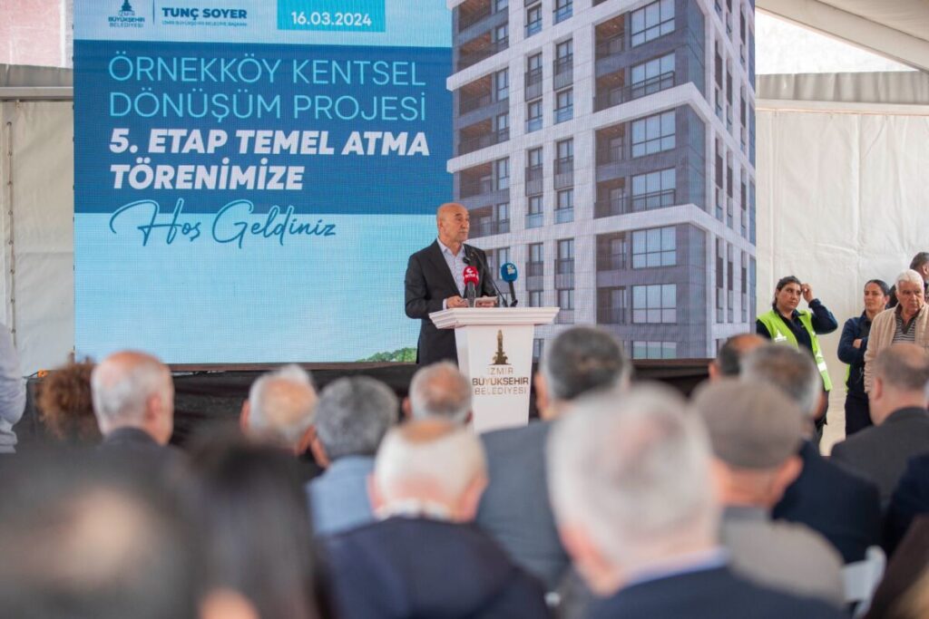 İzmir Büyükşehir Belediye Başkanı Tunç Soyer de depremde yıkılmayan evler ve dirençli bir kent için çalıştıklarını belirtti. Başkan Soyer, “Çıktığımız bu yolda, projemizin 1. etabı kapsamında 130 konut ve 13 iş yerimizi tamamladık. Ağustos 2020’de 143 bağımsız birimin hak sahiplerine anahtar teslimlerini gerçekleştirdik. 2. etapta 170 konut 20 işyerinin inşaatını yüklenici firmamız iş ortaklığında tamamladık. Bu birimlerin anahtar teslimini de Kasım 2023’te yaptık” dedi.