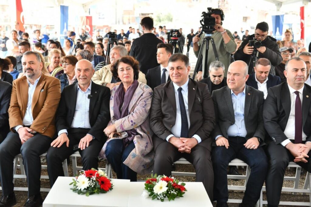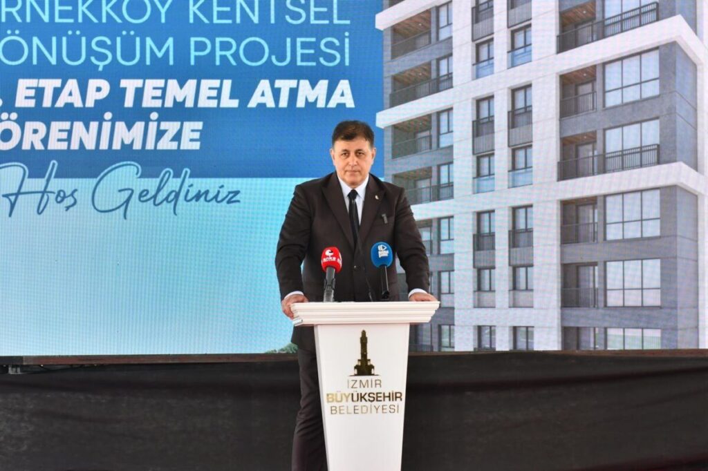 DEMOKRAT GÜNDEM-HABER MERKEZİ-ERDEM ASLAN– CHP İzmir Büyükşehir Belediye Başkan Adayı Dr. Cemil Tugay, İzmir Büyükşehir Belediye Başkanı Tunç Soyer’in ev sahipliğinde, Karşıyaka Örnekköy Mahallesi’nde 18 hektarlık alanda sürdürülen kentsel dönüşüm projesinin 5. etabının temel atma törenine katıldı.