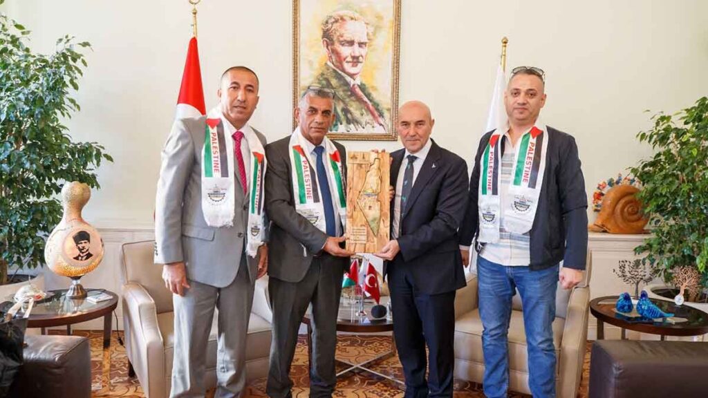 İzmir Büyükşehir Belediye Başkanı Tunç Soyer, Filistin’in Yatta kentinden gelen heyeti makamında ağırladı. Bölgedeki barış ikliminin önemine vurgu yapan Başkan Tunç Soyer, “Dünyada sağduyunun, barışın kazanacağına inanıyoruz. Acıların biteceğine inanıyoruz. Bir daha öyle şeyler yaşanmasın diye aramızdaki bağları güçlendirmemiz gerektiğini öğrendik” dedi.