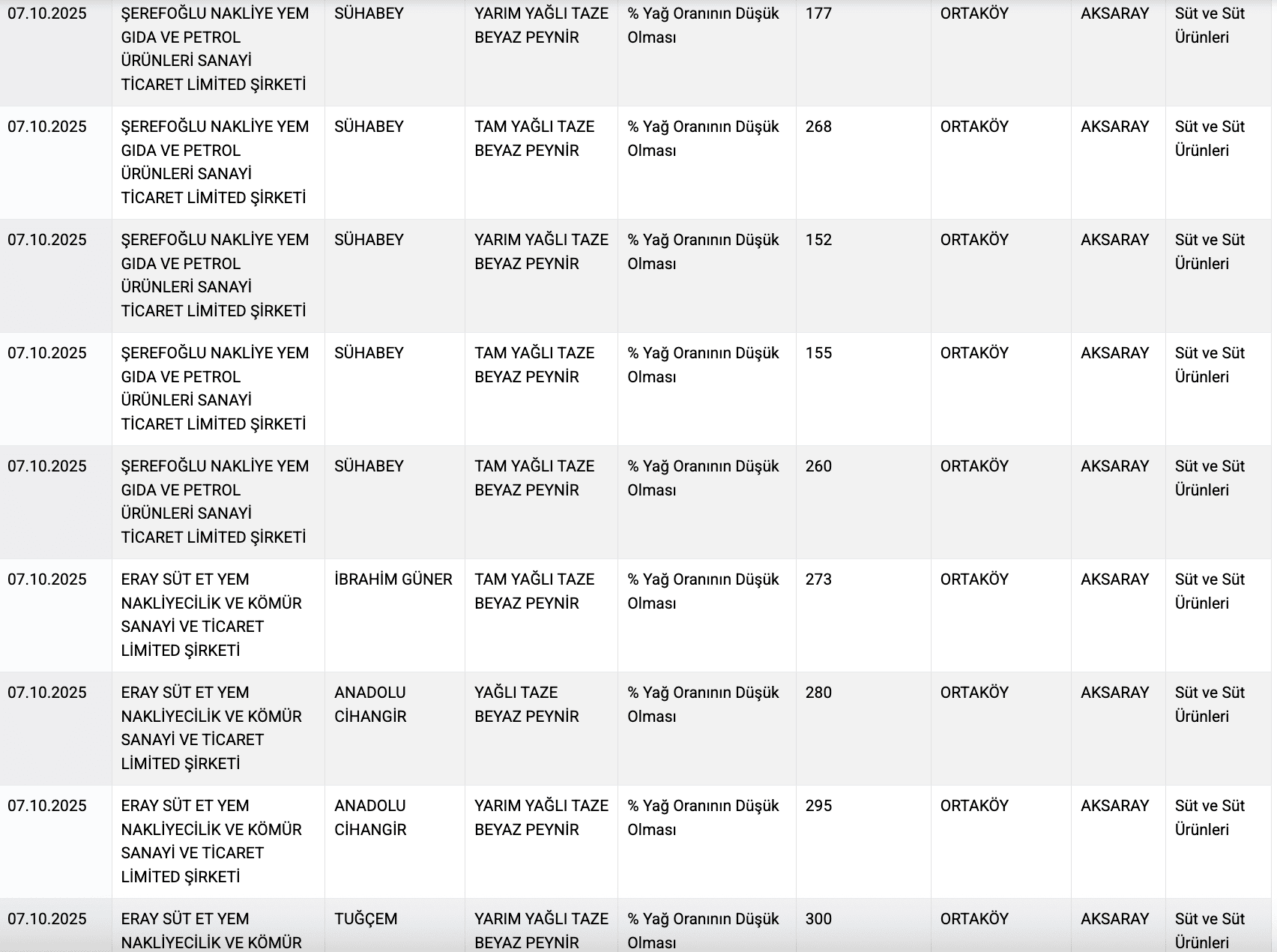 Buna göre bakanlığın 7 Ekim 2025’te duyurduğu ‘Taklit veya Tağşiş Yapılan Gıdalar’ listesine eklenen peynir ürünleri şunlar: