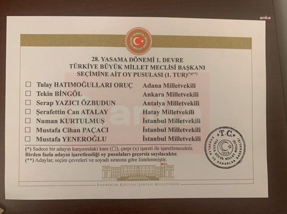 Türkiye İşçi Partisi’nin Başkan Adayı tutuklu Hatay Milletvekili Can Atalay’ın ismi, oy pusulalarında yer aldı. Ancak Atalay’ın ismi, Meclis Başkan adaylarının sıralandığı anonsta okunmadı.