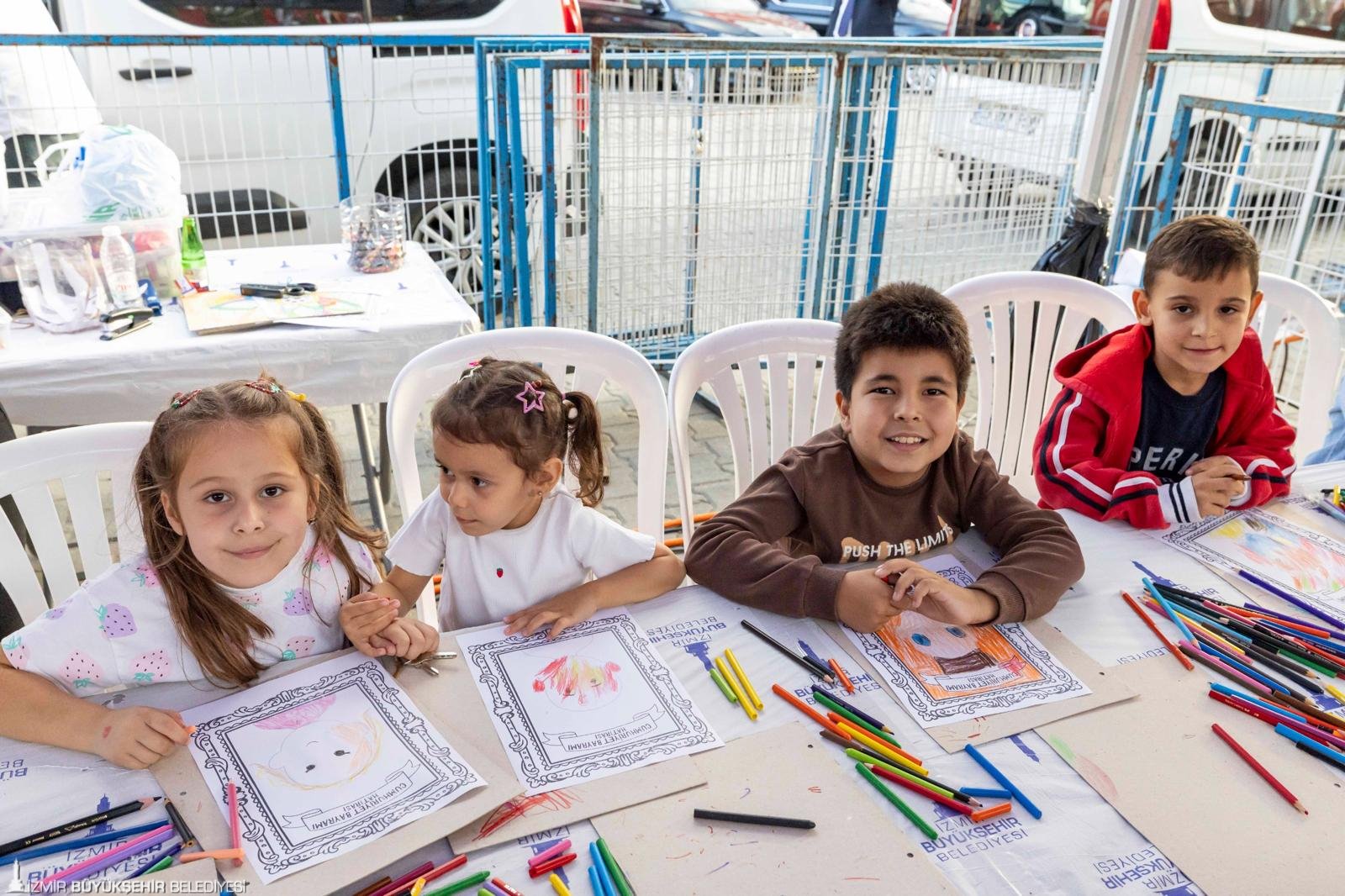 İzmir Büyükşehir Belediyesi Köy Tiyatroları Cumhuriyet Oyunu sahnelenirken mini disko, sihirbaz, palyaço ve yüz boyama etkinlikleriyle minikler de eğlenceye doydu.