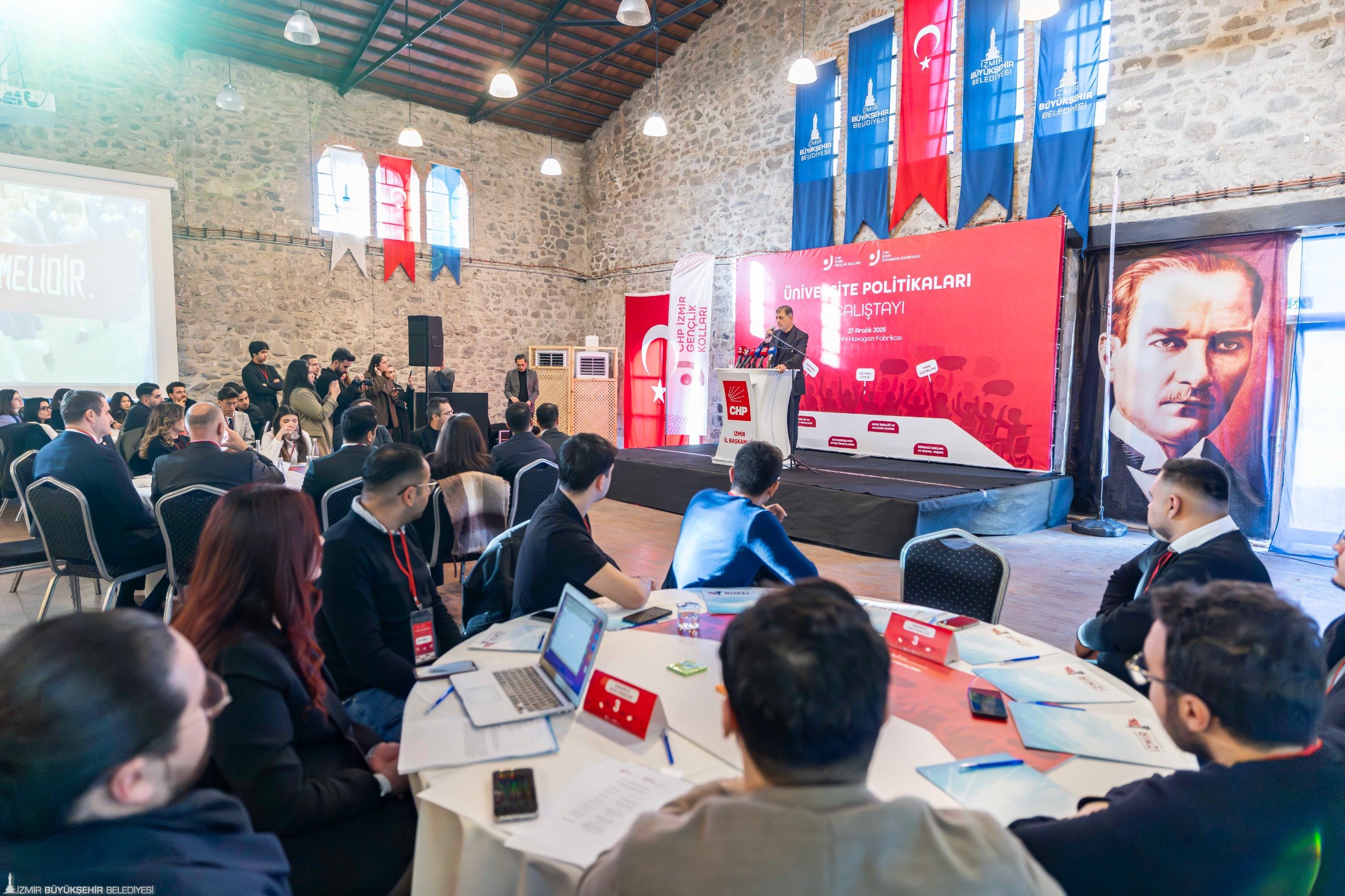 İzmir'de düzenlenen "Üniversite Politikaları Çalıştayı"nda gençlerle buluşan İzmir Büyükşehir Belediye