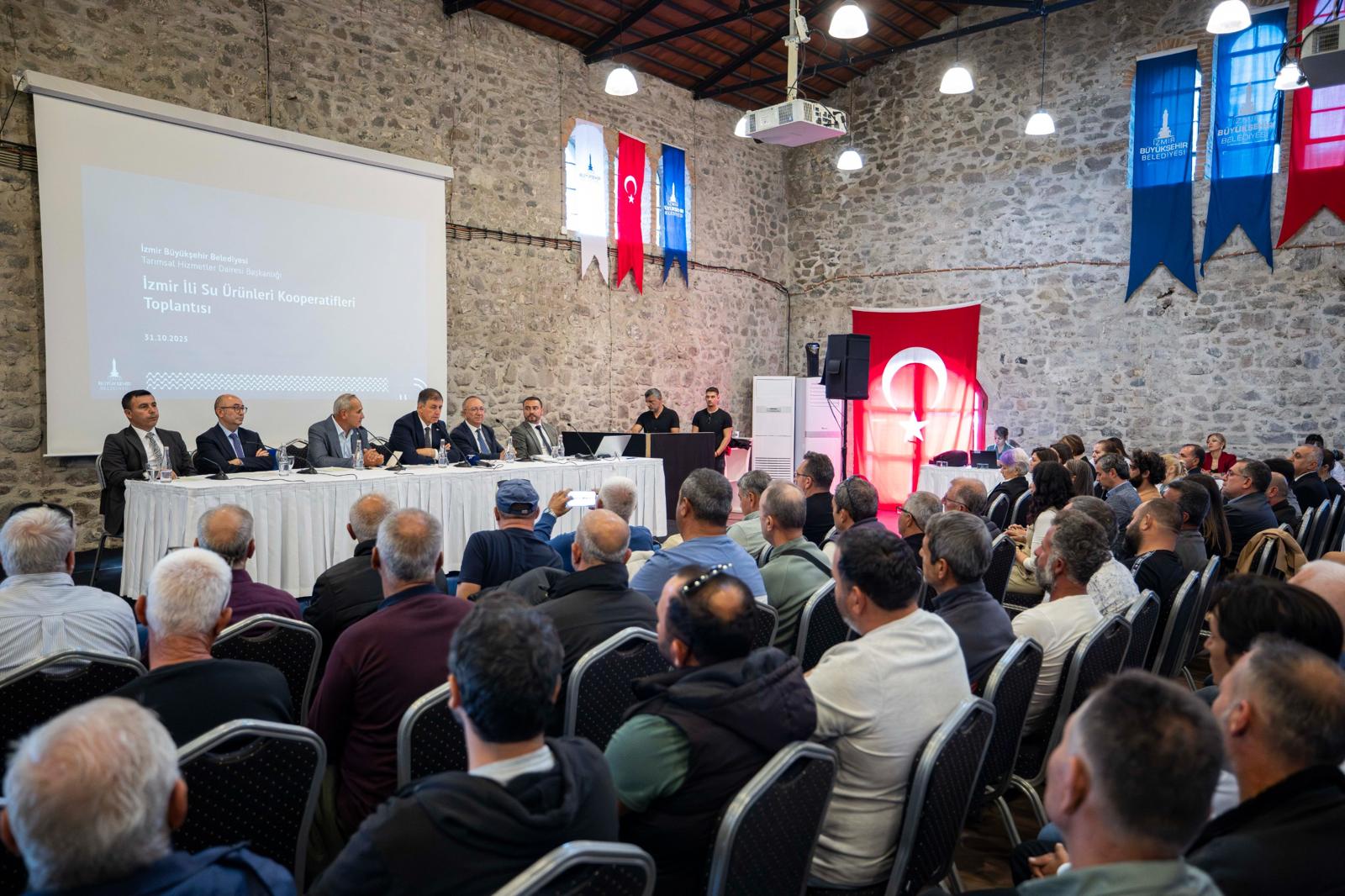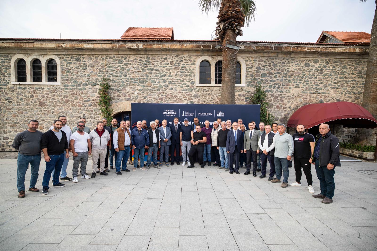 İzmir Büyükşehir Belediye Başkanı Dr. Cemil Tugay, Tarihi Havagazı Fabrikası’nda düzenlenen İzmir Su Ürünleri Kooperatifleri toplantısına katıldı. “Denizimiz bir, ekmeğimiz bir, gücümüz bir“ sloganıyla düzenlenen toplantıda İzmir Büyükşehir Belediyesi Genel Sekreteri Zeki Yıldırım, Genel Sekreter Yardımcısı Halit Çelik ile belediye bürokratları da yer aldı.