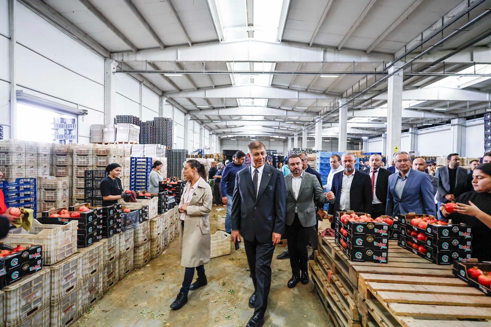 Tesiste hasat edilen narları ihraç edilmek üzere hazırlayan işçilerle sohbet eden Başkan Tugay, üreticilere bereketli bir yıl diledi. Ardından tesiste faaliyet gösteren Selçuk Efes Tarımsal Kalkınma Kooperatifi’ni ziyaret edip katma değerli ürünleri inceledi, üreticilerle sohbet etti.