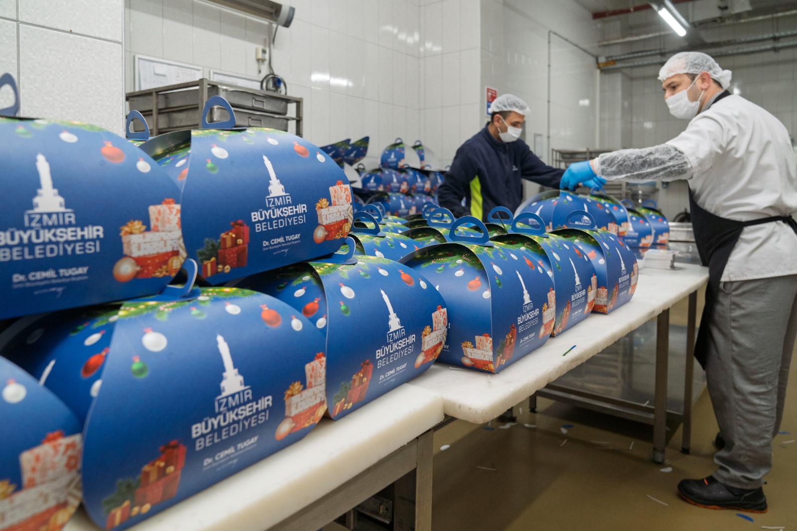 İzmir Büyükşehir Belediyesi, 2026 yılına girerken çocukları mutlu etmek için yine yeni yıl pastası sürprizi yaptı. Büyükşehir Belediyesi’nin Sosyal Yardım Takip Sistemi’nde kayıtlı haneler için İzmir Büyükşehir Belediyesi Sosyal Yaşam Kampüsü içinde hizmet veren Aşevi’nde 3 bin 20 pasta yapıldı. Dağıtıma başlanan pastaların kutuları içinde İzmir Büyükşehir Belediye Başkanı Dr. Cemil Tugay’ın yeni yıl mesajı da yer aldı.
