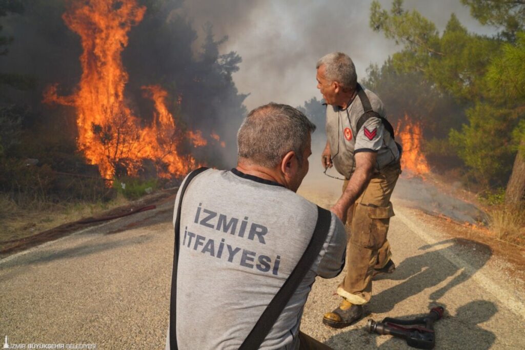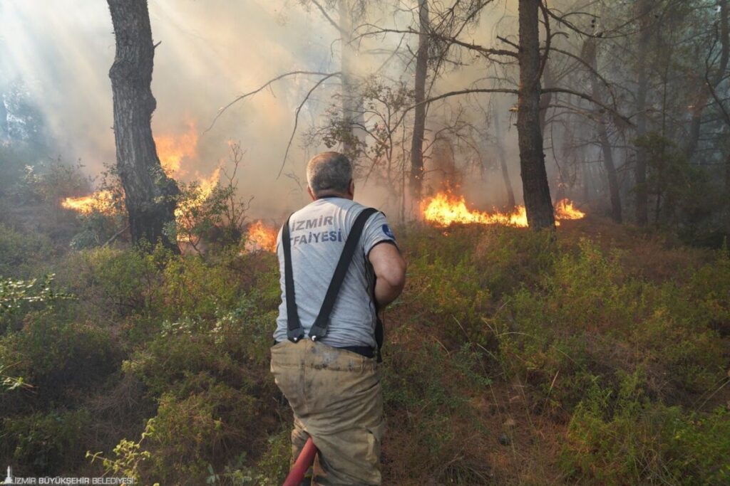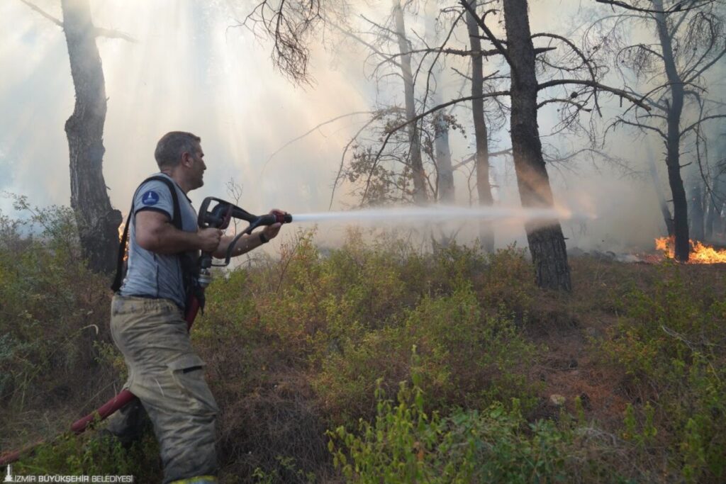 İzmir Orman Bölge Müdürlüğü’nün havadan ve karadan müdahale ettiği yangına, İzmir Büyükşehir Belediyesi İtfaiye Dairesi Başkanlığı ve İZSU Genel Müdürlüğü ekipleri, ilçe belediyelerinin su tankerleri, TOMA’larla müdahale edildi.