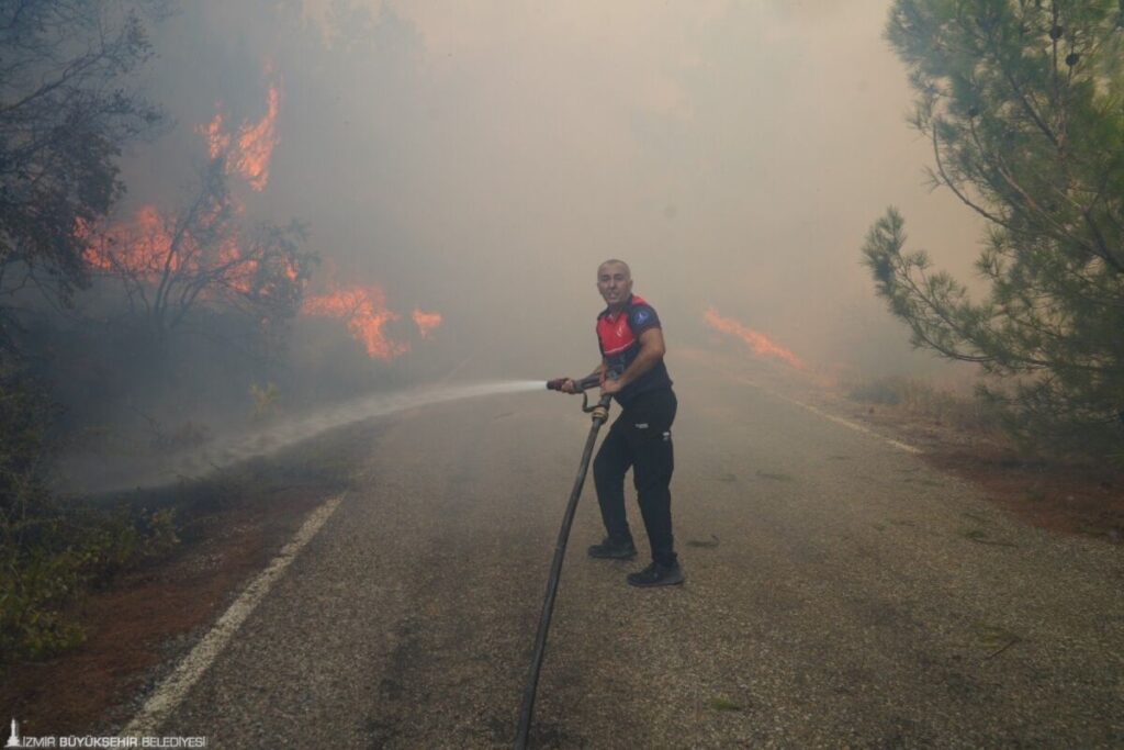 İzmir Orman Bölge Müdürlüğü’nün havadan ve karadan müdahale ettiği yangına, İzmir Büyükşehir Belediyesi İtfaiye Dairesi Başkanlığı ve İZSU Genel Müdürlüğü ekipleri, ilçe belediyelerinin su tankerleri, TOMA’larla müdahale edildi.