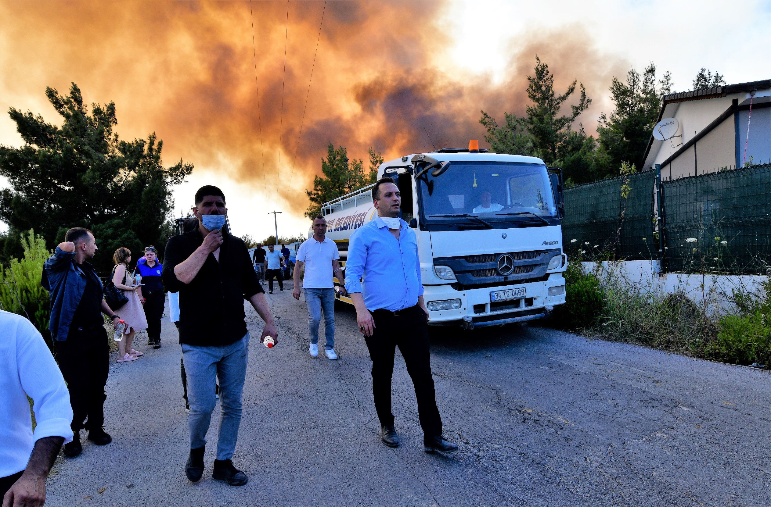 Gökyüzünü kaplayan siyah dumanlar kentin dört bir yanından görülürken, alevlere havadan ve karadan yoğun müdahale başlatıldı.