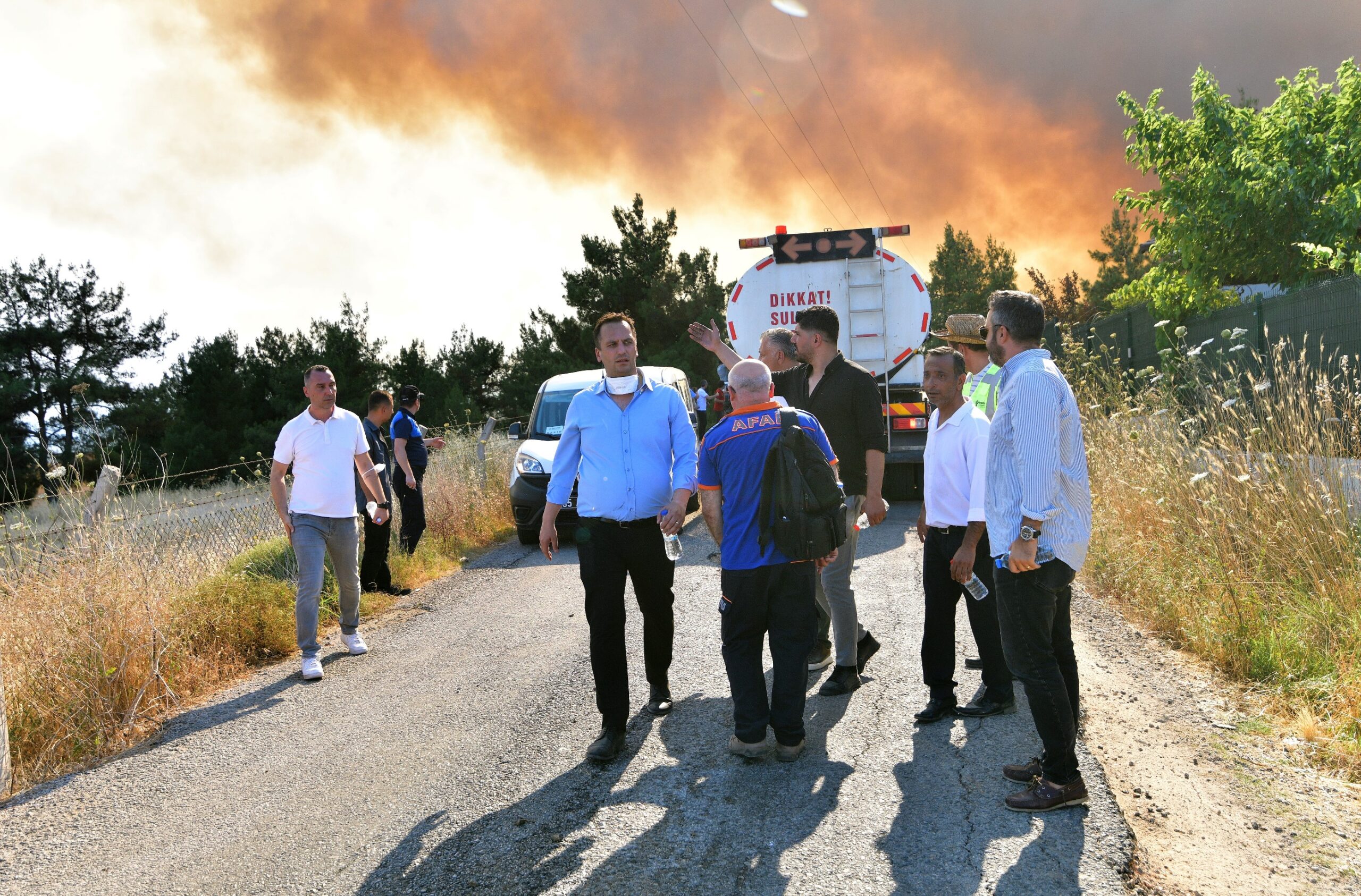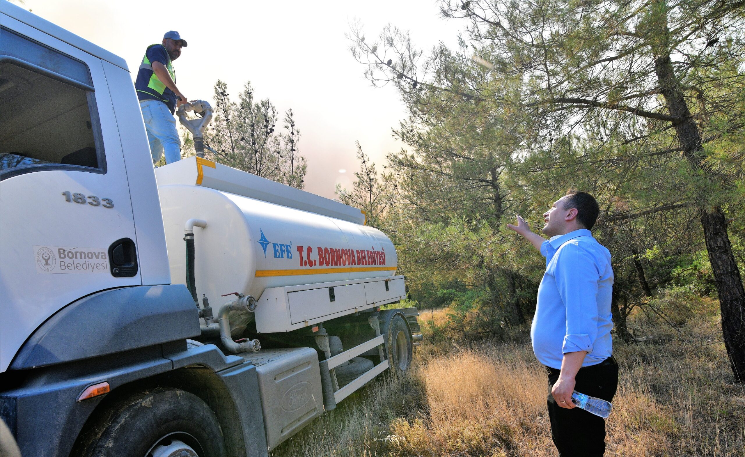 Bornova Belediyesi ekipleri de, Başkan Ömer Eşki’nin talimatıyla bölgeye intikal ederek iş makineleri ve su tankerleriyle söndürme çalışmalarına destek verdi.